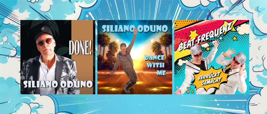You also find the ultimate first ALBUM by Siliano Oduno with the title "DONE!" on all major streaming portals. 15 songs on one CD and online. Thank you for your support. Thank you for 3.356.5881 streams on Spotify (June 10 th, 2024). We started in 2023 with new song- and video-productions. The second album with the title "DANCE WITH ME" was released on May 2026.
